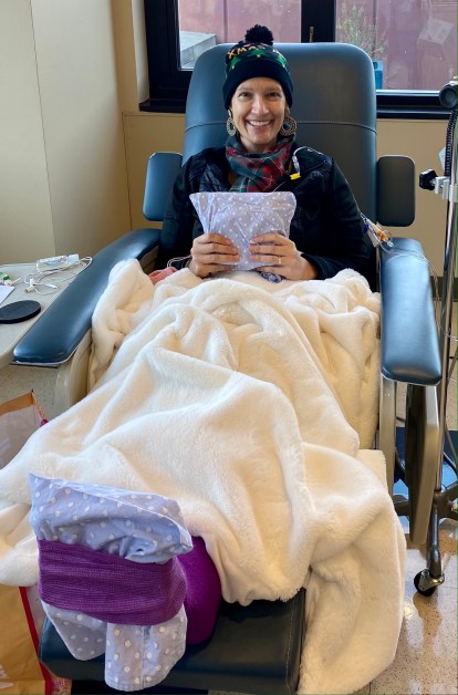 P.S. – Taxol is a “mind over matter” infusion experience – the neuropathy that is tied to taking this medicine means you either plunge your hands and feet into an ice bath or tether them to an ice block. You do this for the length of the infusion (think lots of brrrrr and it’s so cold it burns vibes), in hopes that this minimizes neuropathy risk.